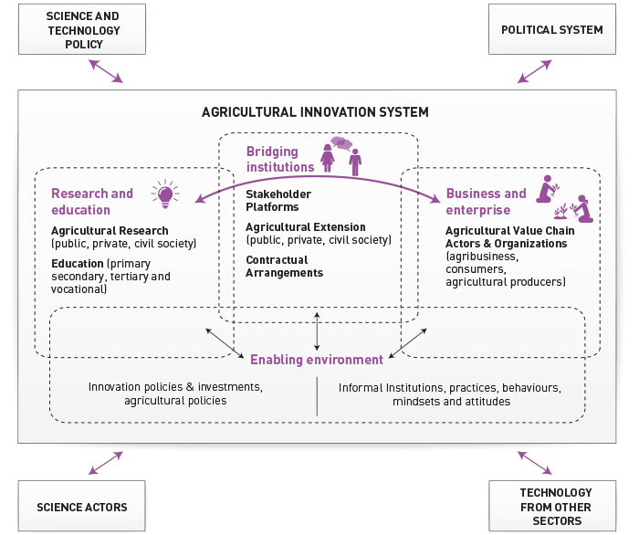 Business and Enterprise: The 'Market Sophistication' and 'Business Sophistication' dimensions of the GII correlate with the 'Business and Enterprise' element of AIS. A favorable GII score implies a dynamic business environment with strong linkages between innovators, producers, and consumers in the agricultural sector, promoting the growth of agribusinesses and value chains.